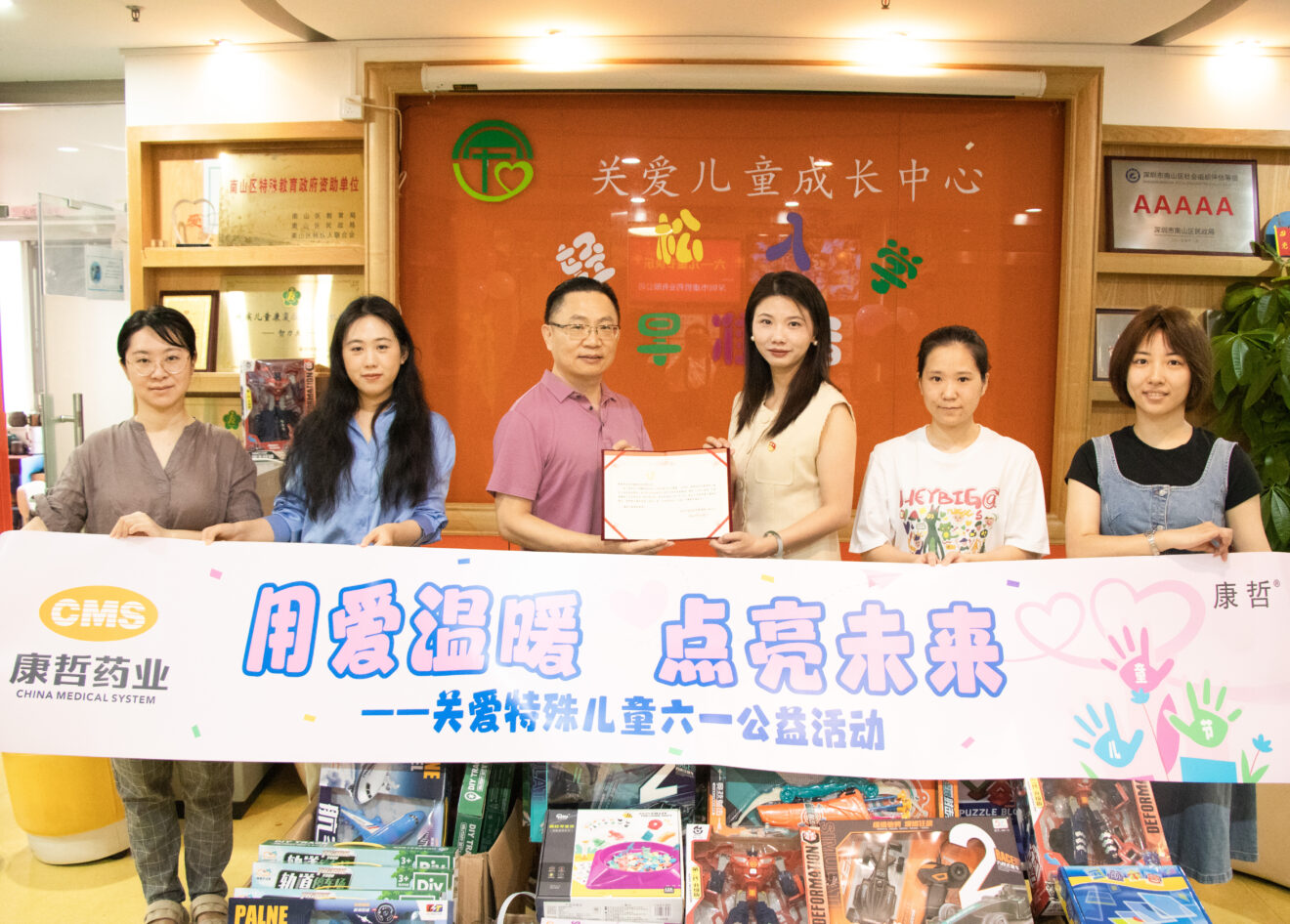 在六一兒童節(jié)來臨之際,康哲藥業(yè)再次通過深圳市南山區(qū)慈善會(huì),向深圳南山區(qū)星星特殊兒童康復(fù)中心和深圳南山區(qū)關(guān)愛特殊兒童中心捐贈(zèng)善款。此次捐贈(zèng)將直接用于兩家中心的教具、玩具的購置與更新,不僅提升了孩子們的獲得感、幸福感、安全感;同時(shí),也為營造良好的教育氛圍,激勵(lì)優(yōu)秀教師,提升教學(xué)質(zhì)量提供了支持。